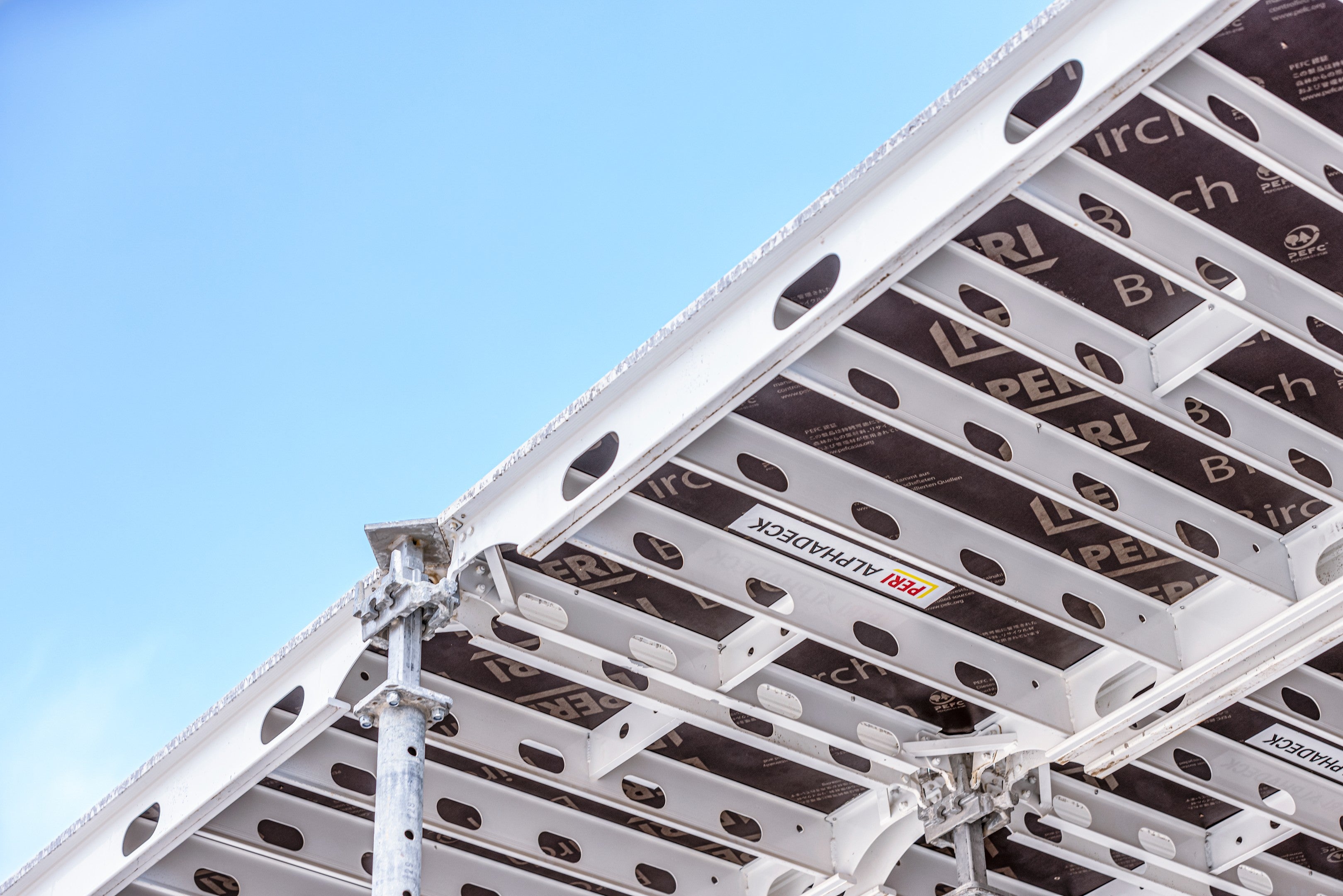 • ALPHADECK offers considerable time and cost savings due to the large panels and possibility of early striking.  Only one prop is required for every 2.88m squared of slab surface.